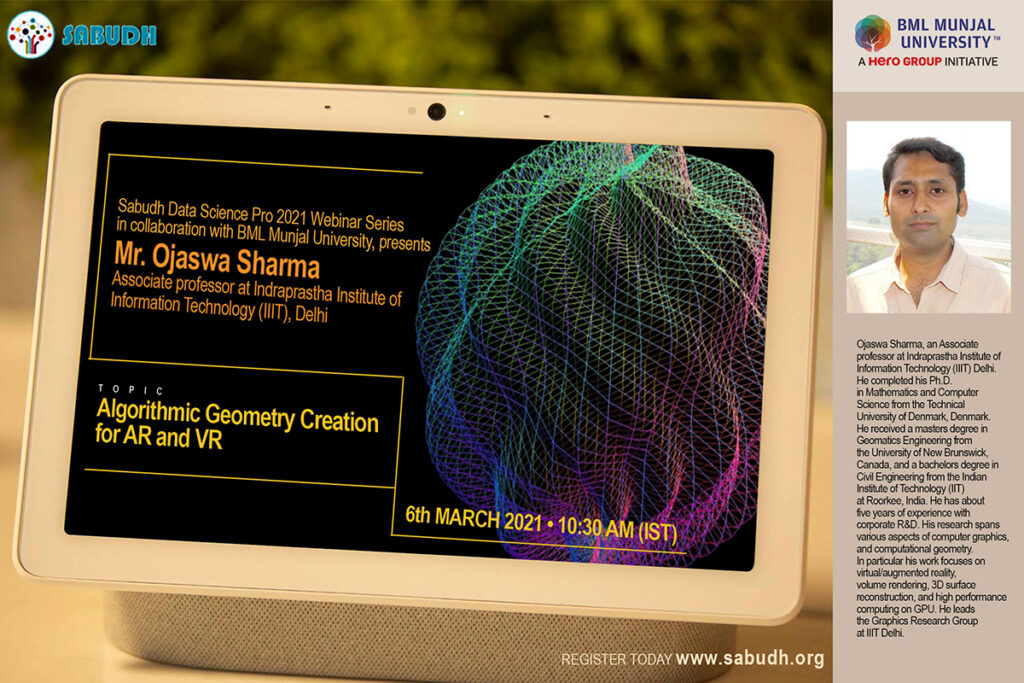 Algorithmic Geometry Creation for AR and VR 6th March, 2021Ojaswa Sharma is an Associate professor at Indraprastha Institute of Information Technology (IIIT) Delhi. He completed his Ph.D. in Mathematics and Computer Science from the Technical University of Denmark, Denmark. He received a masters degree in Geomatics Engineering from the University of New Brunswick, Canada, and […]