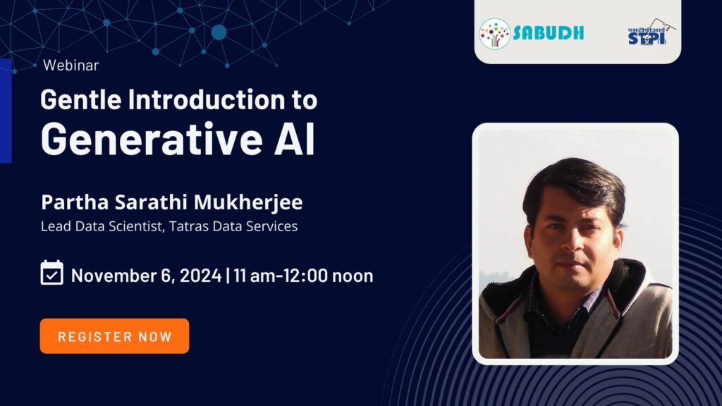 Unlock the World of Generative AI! Date: Wednesday, November 6th Time: 11:00 am – 12:00 noon Speaker: Partha Sarathi Mukherjee, Lead Data Scientist, Tatras Data Services What You’ll Discover: Discover how Generative AI is shaping the future of business, creativity, and innovation. Here’s what you can expect: Explore the Foundation of Deep Learning Learn how […]