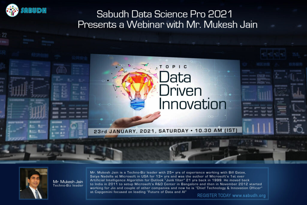 Data Driven Innovation 23rd January, 2021 Mr. Mukesh Jain is a Techno-Biz leader with 25+ yrs of experience working with Bill Gates, Satya Nadella at Microsoft in USA for 13+ yrs and was the author of Microsoft’s 1st ever Artificial Intelligence Algorithm for Outlook “Junk filter” 21 yrs back in 1999. He moved back to […]