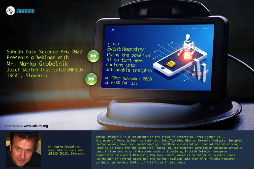 Event Registry: Using the power of AI to turn news content into actionable insights 28th November, 2020 Marko Grobelnik is a researcher in the field of Artificial Intelligence (AI). His area of focus is Machine Learning, Data/Text/Web Mining, Network Analysis, Semantic Technologies, Deep Text Understanding, and Data Visualization. Specialized in solving complex AI tasks for […]